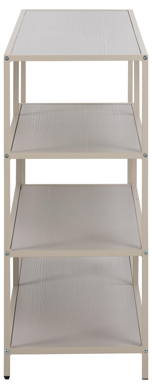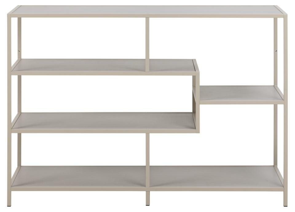 Regał na książki Seaford V marki Actona to nowoczesny regał loftowy o szerokości 114 cm, wykonany z szarego metalu i płyty w wykończeniu półmat. Cztery otwarte półki tworzą lekką, industrialną konstrukcję, idealną do przechowywania książek, dekoracji i praktycznych drobiazgów w salonie, biurze czy pokoju młodzieżowym.