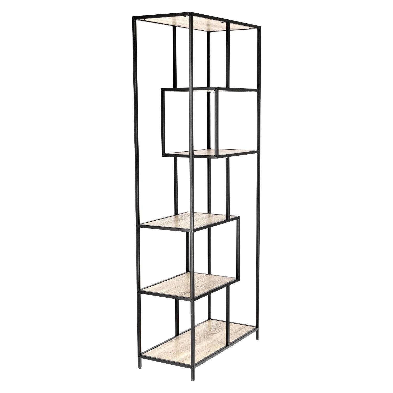 Regał Oxford II posiada kilka nieregularnie rozmieszczonych półek. Tworzą one ciekawy, asymetryczny wzór, który zwraca uwagę i pełni funkcję ozdobną.
