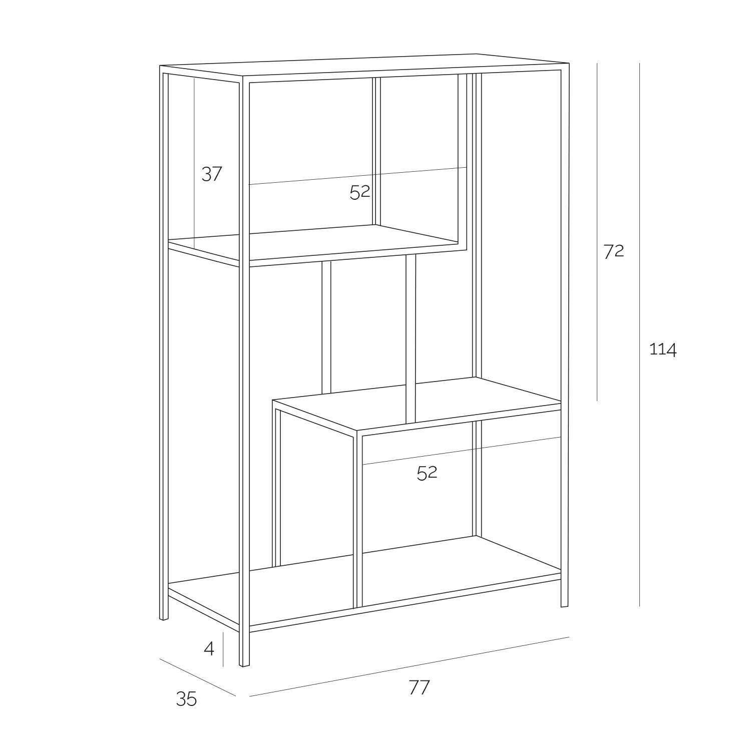 Regał Seaford III idealnie wkomponuje się w minimalistyczne oraz loftowe wnętrza. Półki wykonane zostały z płyty MDF laminowanej jesionem w kolorze czarnym doskonale łączą sie z metalową ramą malowaną proszkowo na kolor czarny. Doskonale sprawdzą się w restauracji, hotelu czy salonie.