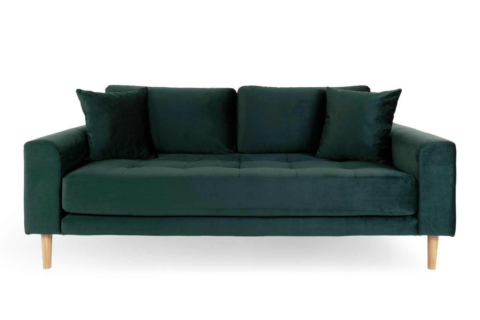 Sofa trzyosobowa Lido marki Intesi to propozycja dla miłośników skandynawskiej prostoty i komfortu, którzy cenią sobie zarówno styl, jak i wygodę użytkowania. Model w odcieniu butelkowej zieleni łączy aksamitną tkaninę welurową z naturalnym drewnem, a szerokość 180 cm zapewnia wygodne miejsce dla trzech osób. Nierozkładana konstrukcja, ergonomiczne podłokietniki oraz sprężyste siedzisko z pianki tapicerskiej sprawiają, że sofa doskonale odnajdzie się w salonie, pokoju młodzieżowym czy eleganckiej poczekalni.