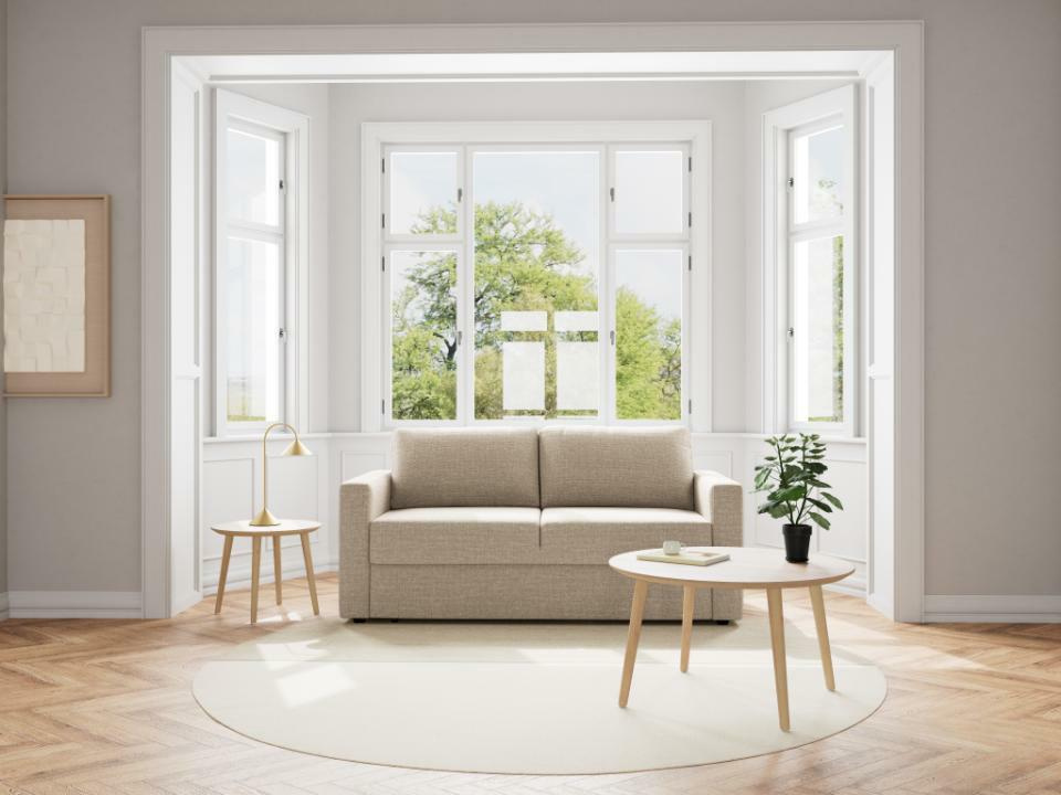 Beżowa tapicerka i proste linie nadają sofie Fleury wyraźnie skandynawski, a jednocześnie ponadczasowy charakter. Neutralny kolor harmonijnie komponuje się z jasnymi ścianami, naturalnym drewnem czy czarnymi dodatkami, dzięki czemu sofa łatwo wpisze się w salon w stylu skandynawskim, nowoczesny pokój dzienny lub funkcjonalny pokój młodzieżowy.