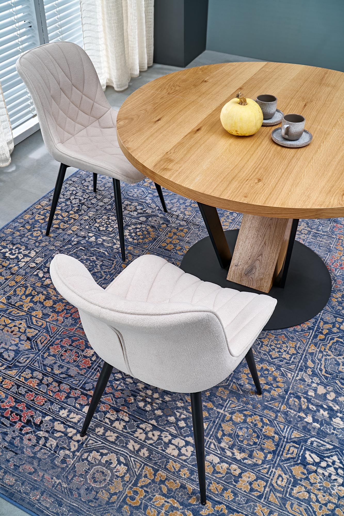 Stół wykonano z materiału: MDF + okleina naturalna ( dębowa ) / stal malowana proszkowo, kolor blat – naturalny, nogi - czarny / naturalny