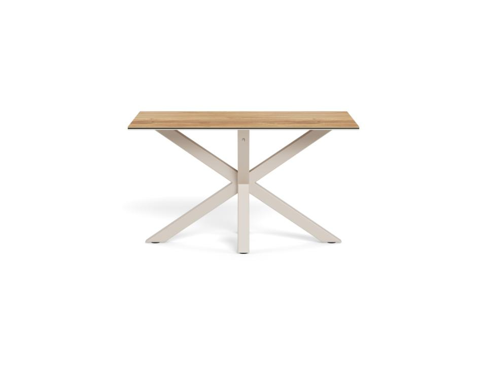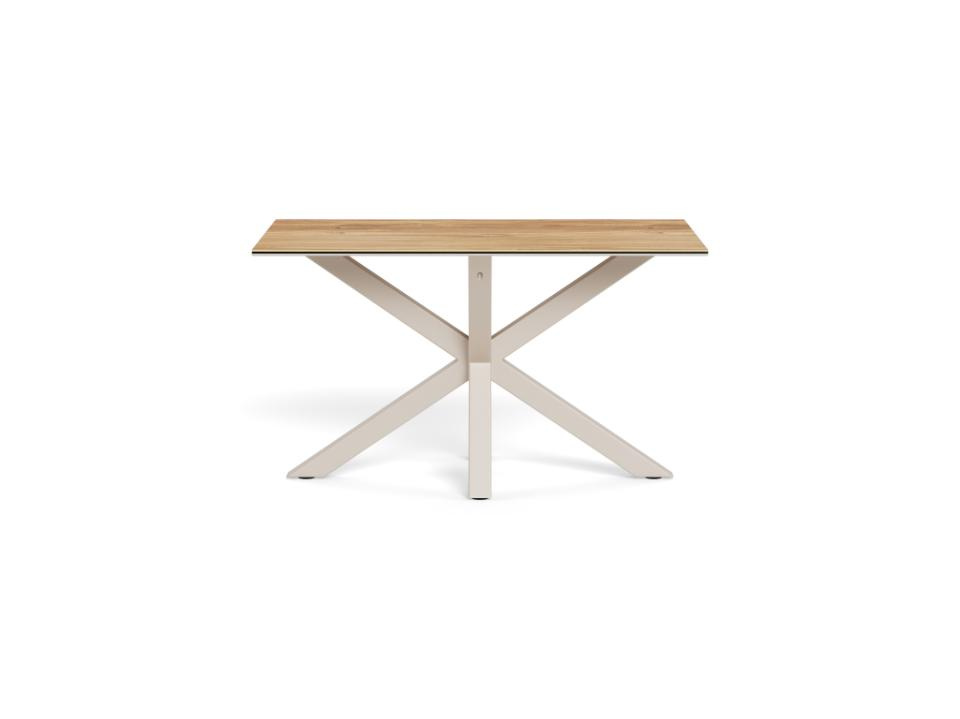 Matowe wykończenie ceramiki o wyglądzie drewna nadaje meblowi przytulny, domowy charakter, zachowując przy tym minimalistyczną, nowoczesną linię. To świetna propozycja, jeśli szukasz stołu, który będzie pasował do prostych, współczesnych wnętrz i jednocześnie ociepli przestrzeń.