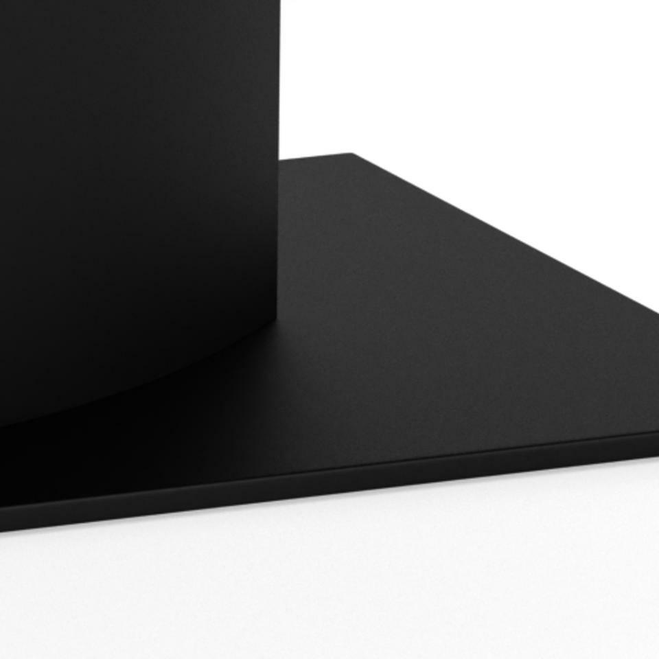 Solidna stalowa konstrukcja i waga ponad 100 kg przekładają się na bardzo dobrą stabilność. Stół nie chwieje się przy oparciu, a blat pozostaje pewnym oparciem nawet przy intensywnym użytkowaniu. Czarny kolor podstawy tworzy wyrazisty kontrast z szarym blatem, podkreślając nowoczesny charakter mebla.