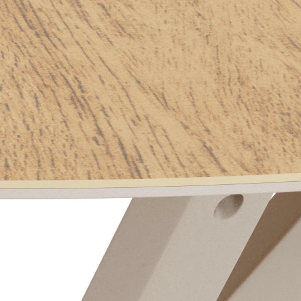 Blat wykonany jest z ceramiki połączonej ze szkłem, wykończonej w matowym dekorze naturalnego dębu kaszmir. Taka powierzchnia jest odporna na codzienne użytkowanie – zarysowania, gorące naczynia czy zabrudzenia. Dzięki temu możesz swobodnie serwować obiady, kolacje czy desery bez obaw, że odłożony talerz czy kubek pozostawi ślad. Gładka, matowa powłoka ułatwia utrzymanie stołu w czystości – wystarczy wilgotna ściereczka, aby przywrócić mu nienaganny wygląd.