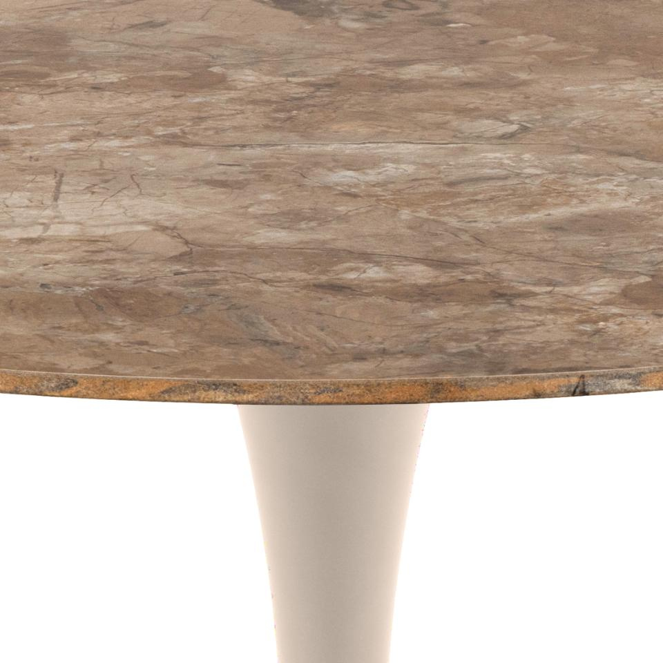 Malta to stół nowoczesny, który świetnie odnajdzie się zarówno w minimalistycznych aranżacjach, jak i w bardziej przytulnych wnętrzach. Brązowo–beżowy blat z ceramiki, o polerowanym wykończeniu, subtelnie odbija światło i dodaje wnętrzu lekko luksusowego charakteru. Beżowa, metalowa podstawa w formie jednej, centralnej nogi nadaje bryle lekkości, a jednocześnie ułatwia ustawienie krzeseł – bez plątaniny nóg przy krawędzi blatu.