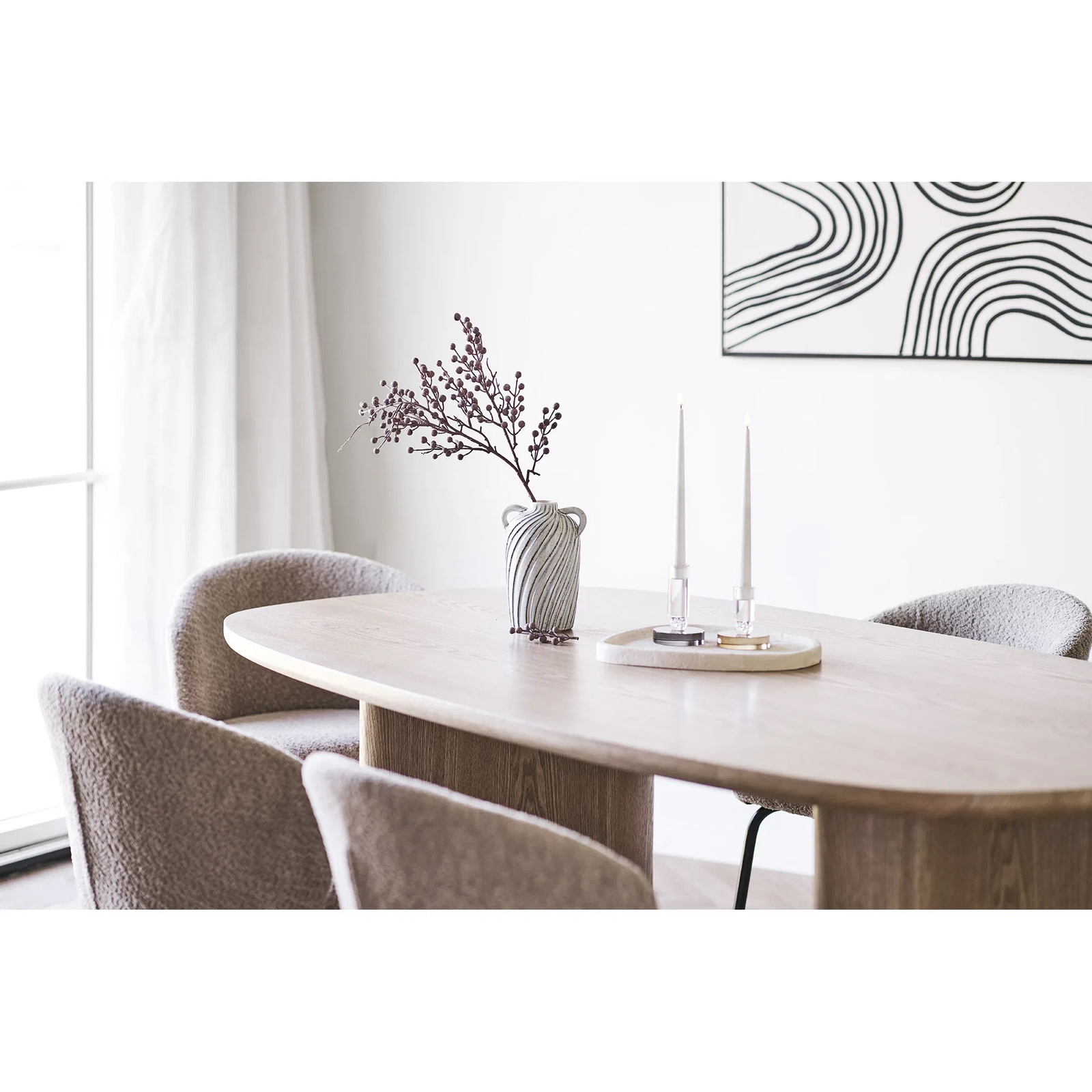Stół Serra marki House Nordic to owalny stół do jadalni o wymiarach 110×210 cm, wykonany z fornirowanego blatu w naturalnym wybarwieniu jesionu i stabilnej drewnianej podstawy. Łączy w sobie skandynawski minimalizm, ciepło naturalnego drewna i wygodną powierzchnię do codziennych posiłków oraz rodzinnych spotkań.
