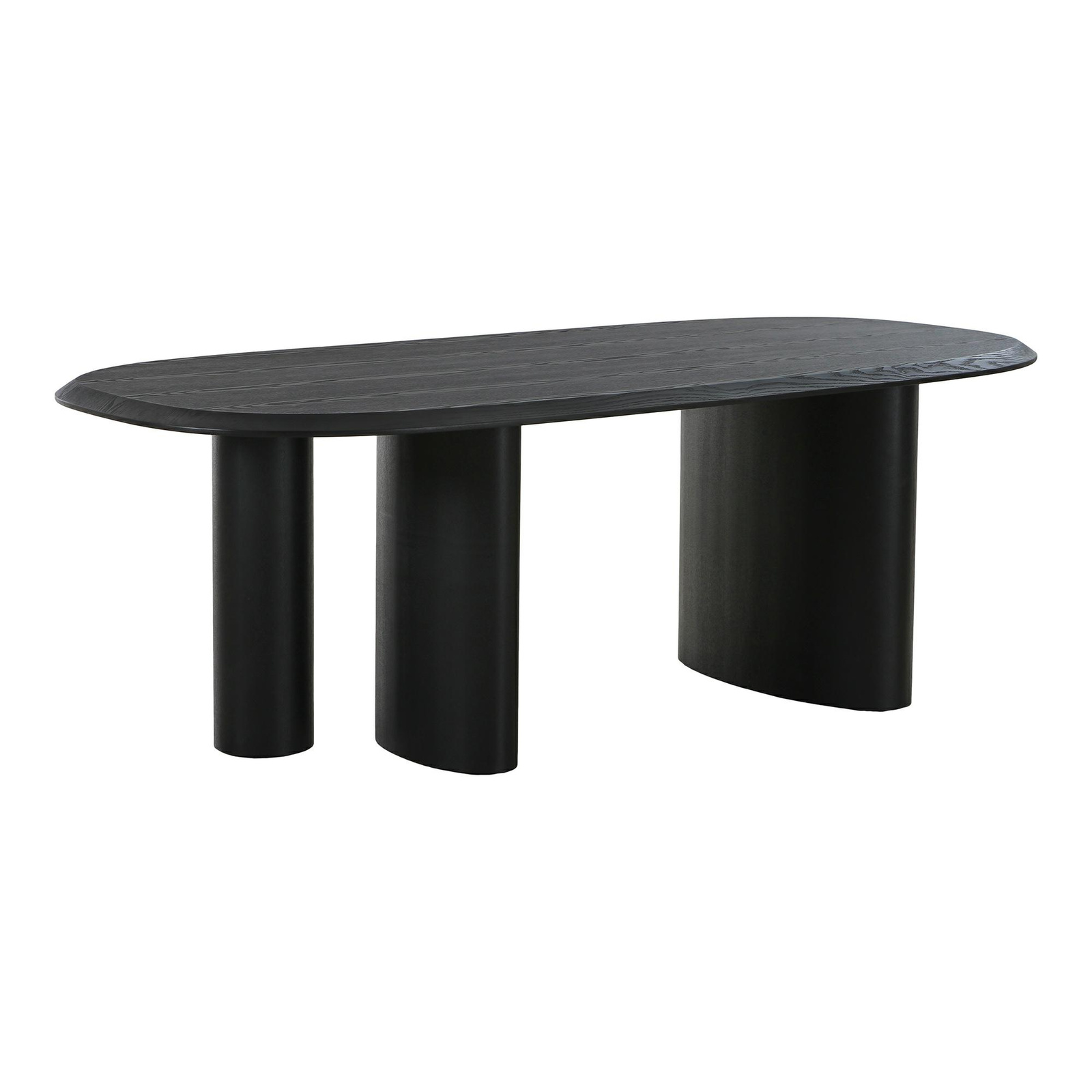 Stół Tirano marki House Nordic to elegancki, nowoczesny stół do jadalni o owalnym blacie 220 × 100 cm, wykonany z fornirowanego jesionu w matowej, czarnej tonacji. Stabilna, drewniana podstawa na trzech nogach i dopracowane proporcje o wysokości 76 cm tworzą funkcjonalne, a jednocześnie wyraziste serce domowej przestrzeni.