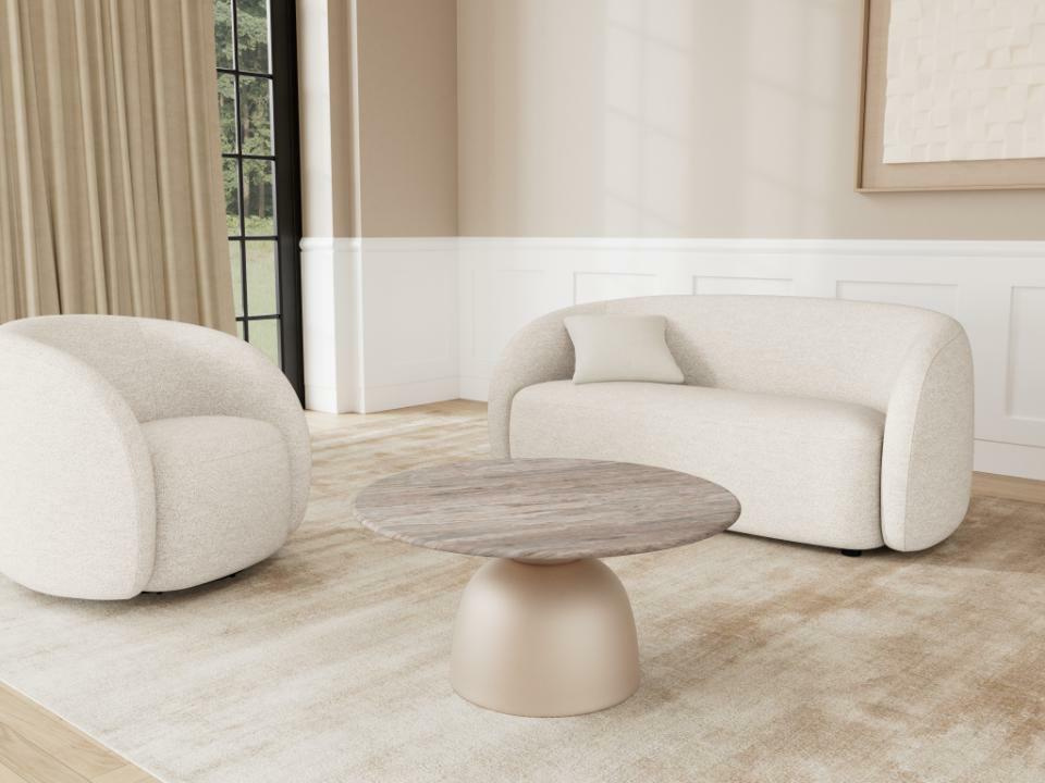 Ferrol to stolik kawowy okrągły zaprojektowany z myślą o miłośnikach prostoty i wyrafinowania. Szary blat z polerowanego marmuru tworzy subtelny, ale wyrazisty akcent dekoracyjny – naturalne użylenia kamienia sprawiają, że każdy egzemplarz jest niepowtarzalny. Okrągły kształt ułatwia ustawienie ławy kawowej pośrodku salonu, przy narożniku lub sofie, a brak ostrych krawędzi jest praktyczny w domu z dziećmi czy zwierzętami.